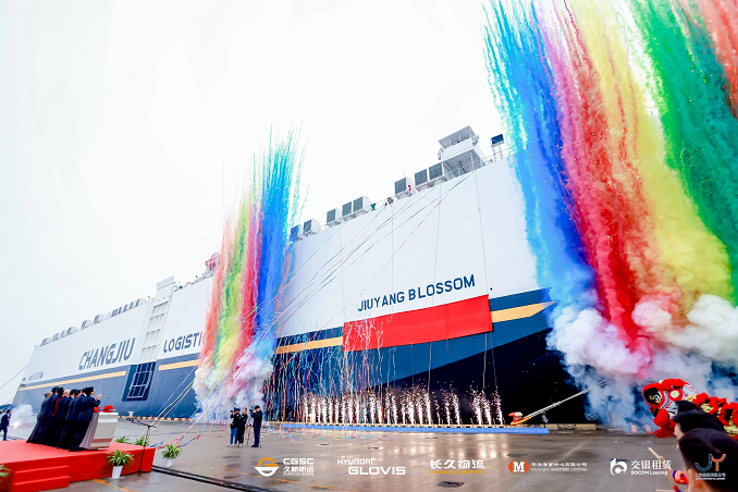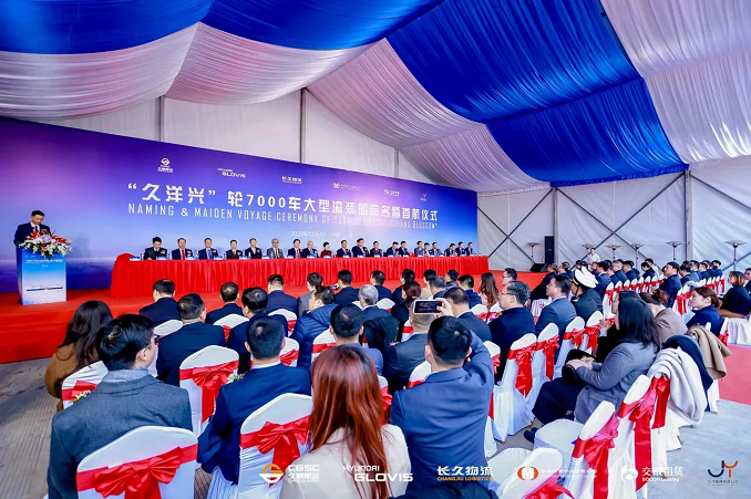 2023年12月4日,北京長久物流股份有(yǒu)限公司與合作(zuò)夥伴華洋海事中心、韓國現代格羅唯視(shì)有(yǒu)限公司、交銀金融租賃有(yǒu)限責任公司共同在上(shàng)海舉行(xíng)了“久洋興”輪7000車(chē)大(dà)型滾裝船(chuán)命名暨首航儀式。來(lái)自中國船東協會長江分會、中國航海學會(huì)、中國船(chuán)級社、交通(tōng)運輸部水(shuǐ)運科學研究院、中國物流與采購聯合會(huì)、中國汽車(chē)流通(tōng)協會(huì)、上(shàng)海海事局、交通(tōng)運輸部東海救助局、上(shàng)海臨港集團、洋山(shān)出入境邊防檢查站(zhàn)、上(shàng)海海事大(dà)學、上(shàng)海船(chuán)舶研究設計(jì)院、上(shàng)海海通(tōng)國際汽車(chē)碼頭有(yǒu)限公司、中世國際物流有(yǒu)限公司、久洋船(chuán)務有(yǒu)限公司、長久格羅唯視(shì)(上(shàng)海)航運有(yǒu)限公司等單位的領導和(hé)代表莅臨現場(chǎng),共同見證了這曆史性的時(shí)刻。