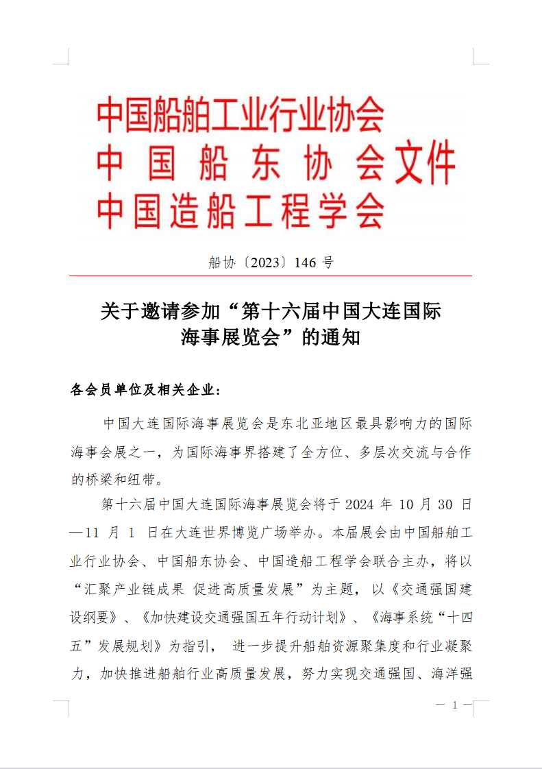 關于邀請(qǐng)參加“第十六屆中國大(dà)連國際海事展覽會(huì)”的通(tōng)知