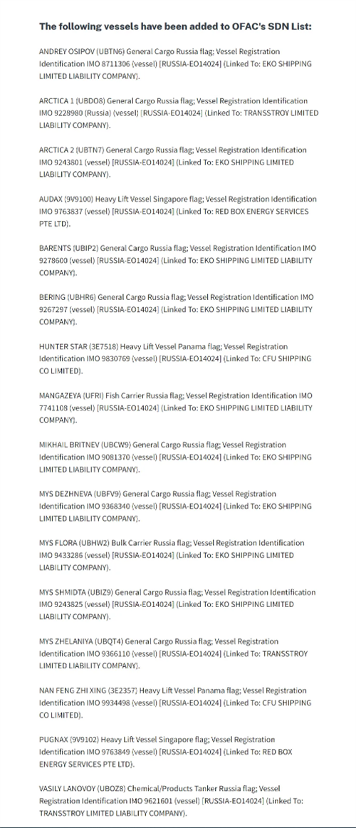 美國制(zhì)裁俄羅斯!這幾家(jiā)船(chuán)公司及多(duō)艘船(chuán)舶被列入黑(hēi)名單