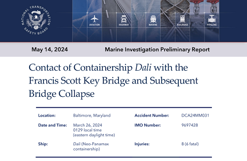 5月14日,美國國家(jiā)運輸安全委員會(huì) (NTSB) 公布了針對 2024 年 3 月 26 日巴爾的摩弗朗西斯·斯科特·基橋(以下簡稱“巴爾的摩大(dà)橋”)坍塌事故的初步調查報告。