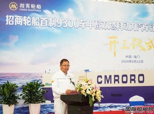 2024年6月12日,招商輪船(chuán)向招商工業訂造的9300車(chē)甲醇雙燃料滾裝船(chuán)“CMHI-293-01”開(kāi)工儀式在江蘇海門(mén)舉行(xíng)。招商輪船(chuán)副總經理(lǐ)孫劍鋒,招商工業副總經理(lǐ)梅中華出席開(kāi)工儀式。