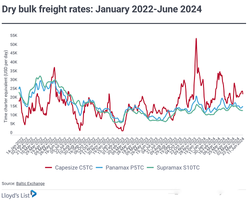 Capesize 的運價在過去9個(gè)月大(dà)幅跑赢panamax和(hé)supramax運價,此前表現不佳。