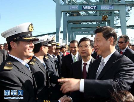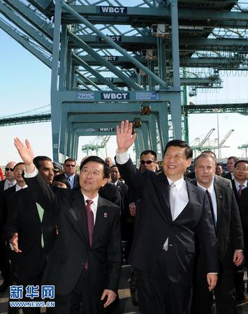 2月16日,中國國家(jiā)副主席習近平在美國參觀中國海運洛杉矶碼頭。